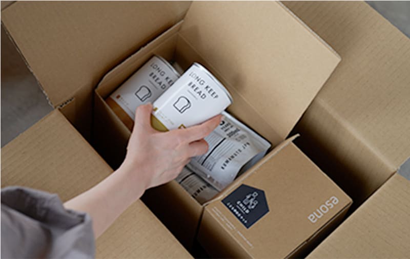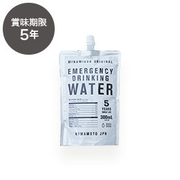 シンプルなデザインと環境に配慮されたパウチ型5年保存水。