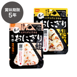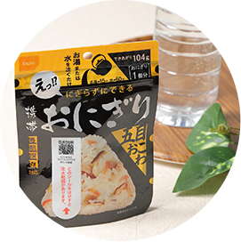 味は鮭と五目おこわ。水かお湯で簡単調理、具だくさんで美味しい長期保存携帯おにぎり。