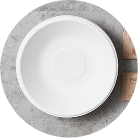 サトウキビから生まれた天然素材使用、水や油に強い丈夫な紙ボウル。