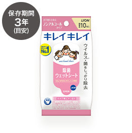 ノンアルコール除菌できるシート。口元の汚れもふき取れるお子様にも安心のノンアルコールタイプ。
